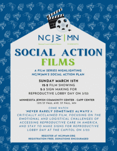 March 15 Social Action Film Series 12:00 pm — 3:00 pm Minnesota Jewish Community Center 1375 St Paul Ave. St Paul, MN 55116